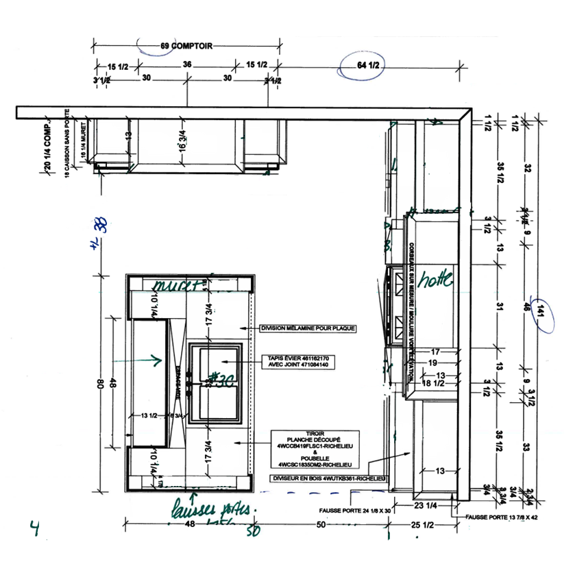Cuisine démo à vendre tel quel, grandeur de 134'' x 141''