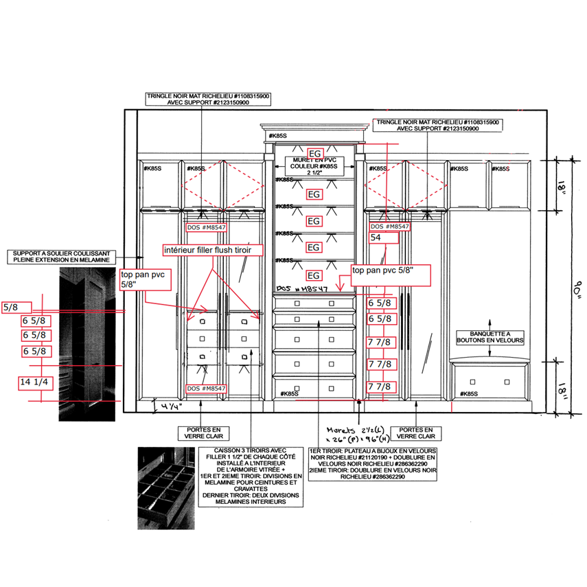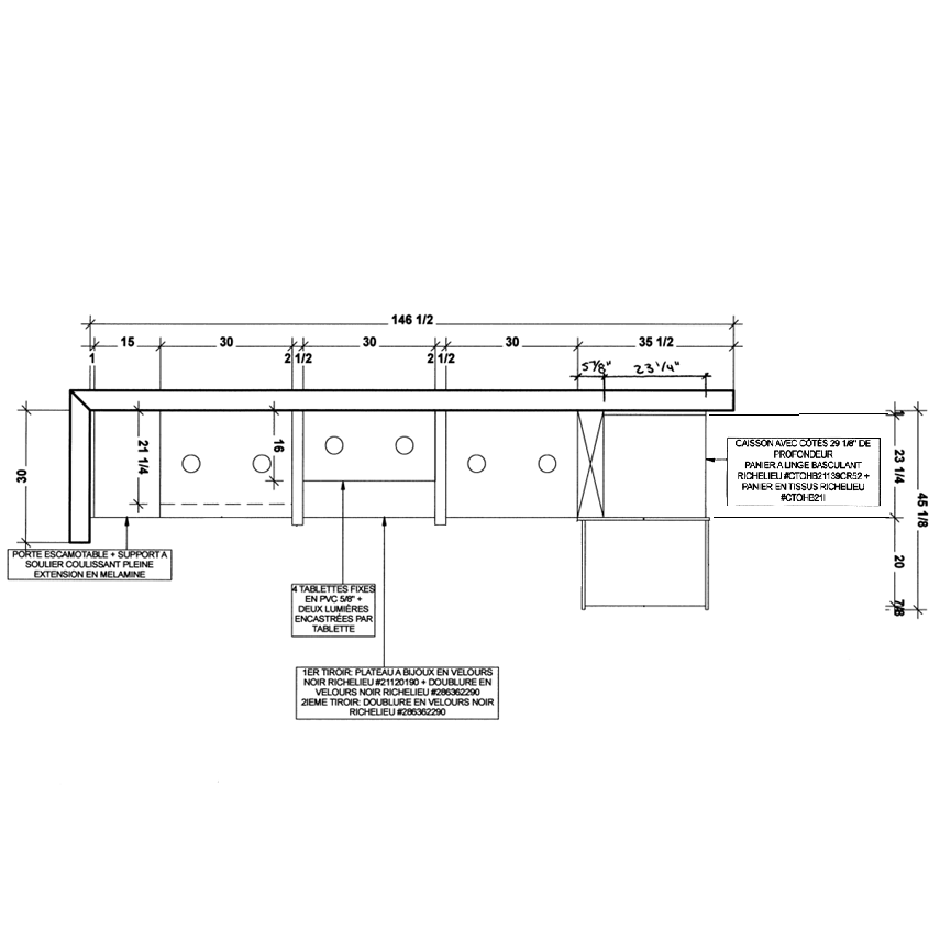 GARDE-ROBE démo à vendre tel quel, grandeur de 146 1/2'' x 45 1/2''